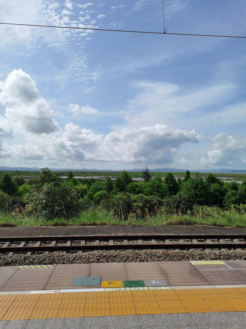 休息一宿坐一大早的高铁回来,雁荡站也就是雁荡山的火车站,从景点过来可以从游客中心转车,比较方便,打车花了19也就十来分钟。车站站台前面是雁荡山脉,后面背靠一条小溪,配上蓝天白云简直了。