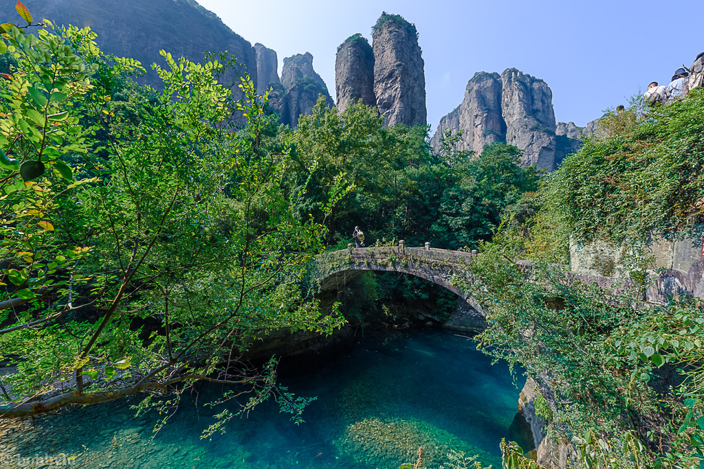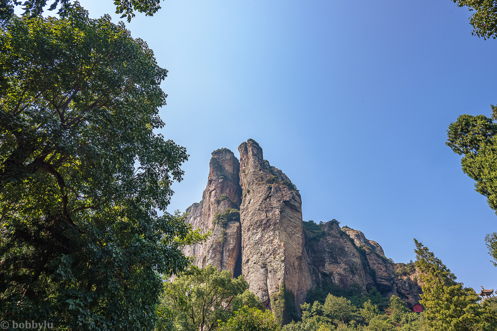 我虽算不上是什么达人,但我恰巧就是以这样的方式来参与了这次雁荡山之行,毕竟我恐高不敢坐缆车,并且我身背着装满摄影设备的大包重达二十多斤,这理由就完美到可以原地飞无人机而不用那么玩命的爬山徒步前行了吧。但相关景点还是要去的,该走的路一步也少不了的。相比徐霞客,文献上这样记载着“⋯⋯己而山愈高,脊愈狭,两边夹立,如行刀背。又石片棱棱怒起,每过一脊,即一峭峰,皆从刀剑隙中攀援而上,如是者三......。”从上面的描述中可见攀爬之艰难山势之陡峭!
