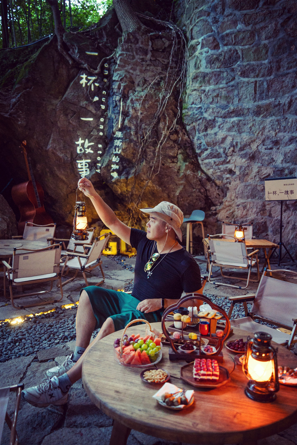 一种浑然天成的野性感,布置了户外风格的桌椅和露营灯,非常出片,老板娘非常热情。一杯精致的石斛咖啡搭配下午茶入肚,一身疲惫一扫而空,让我充满了继续上山探索的斗志。上面就是东西瑶台,山上的风景更美!