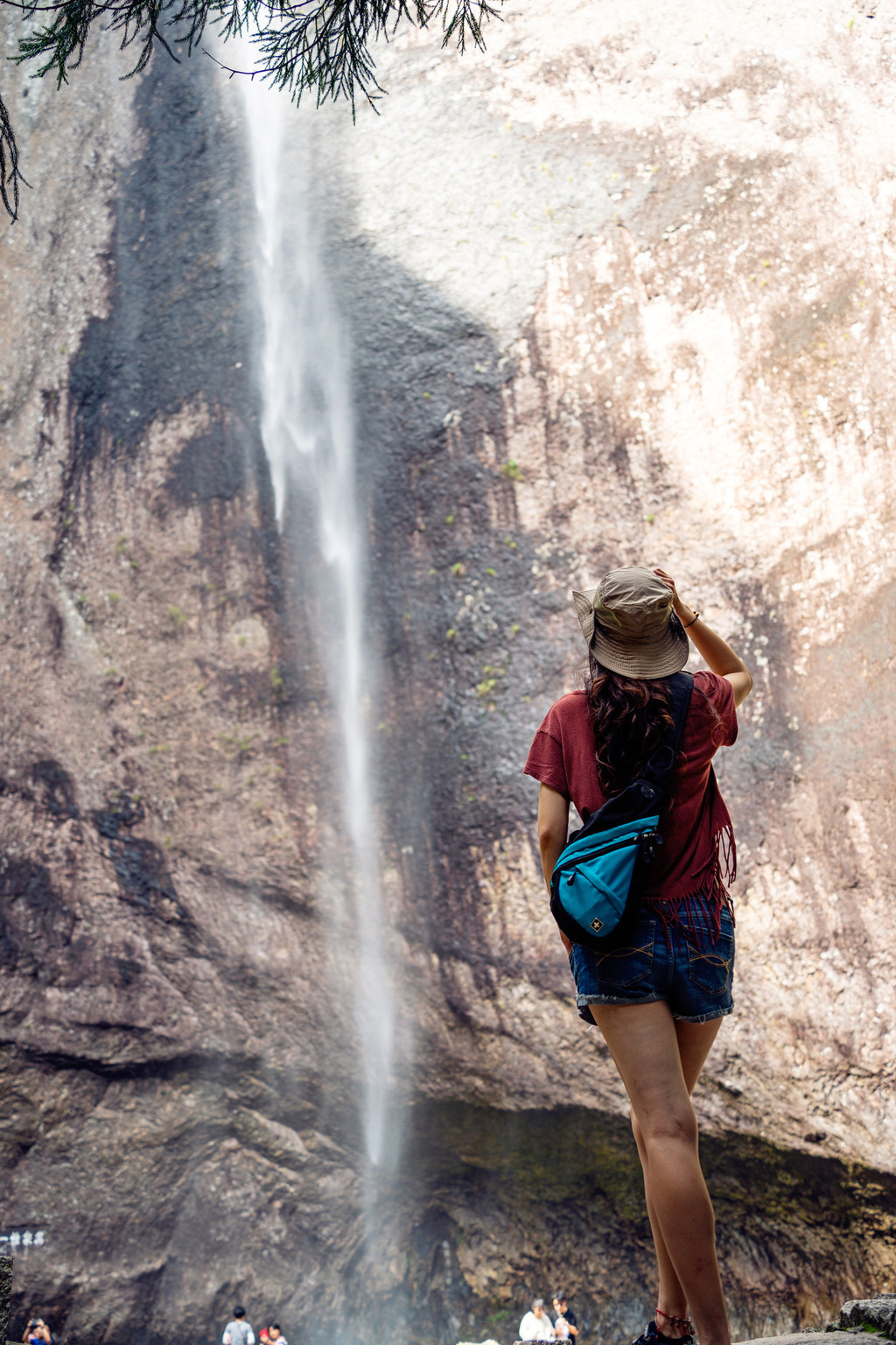 很快来到了大龙湫瀑布,它发源于百岗尖,流经龙湫背,从连云峰凌空泻下。而且随四时雨量有所不同。春夏似银河天降,直捣潭心;秋冬如珠帘高悬,随风飘洒。它的垂直落差达到190米,堪称中国第一高瀑,并与贵州黄果树瀑布、黄河壶口瀑布、黑龙江吊水楼瀑布并称中国四大瀑布。
