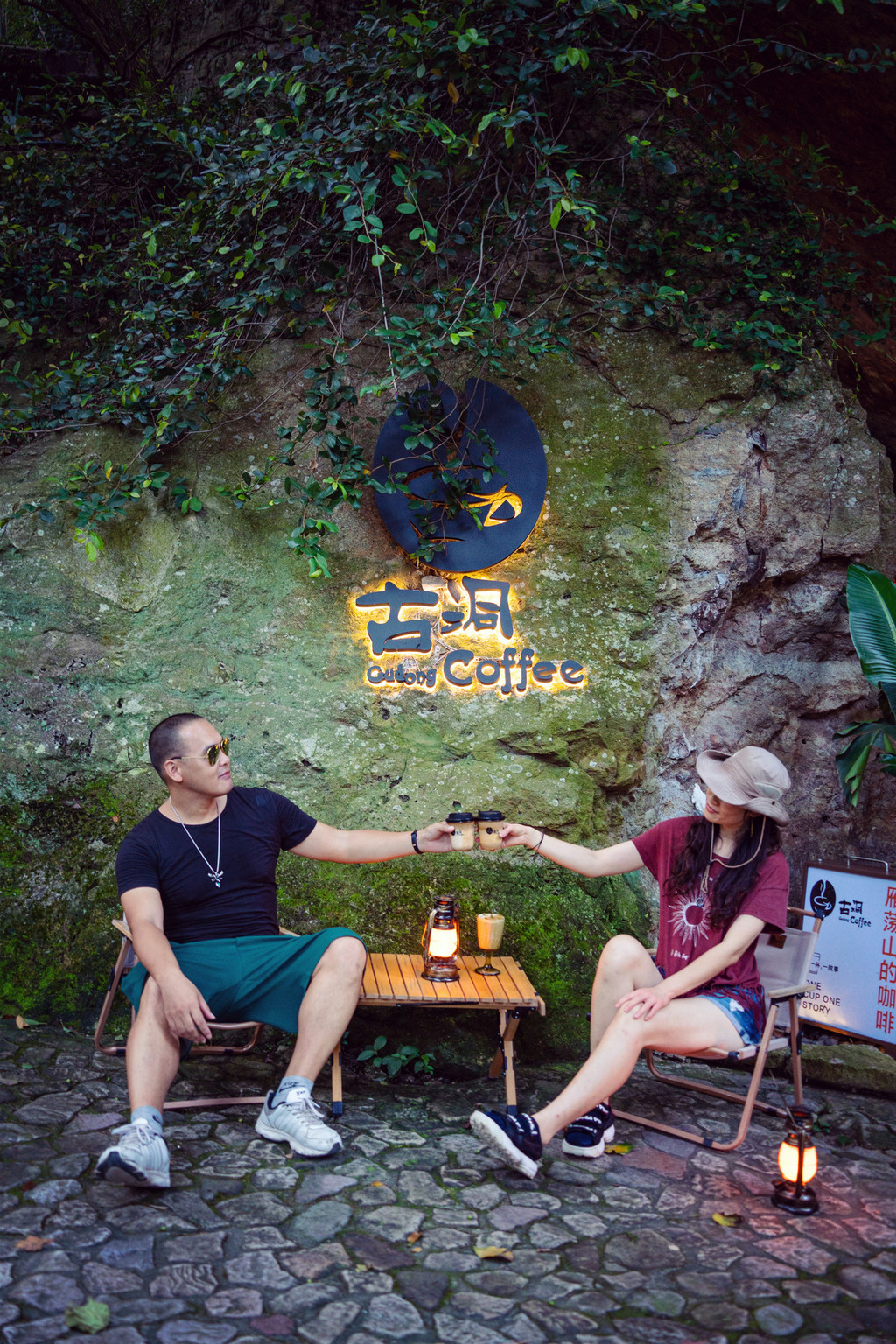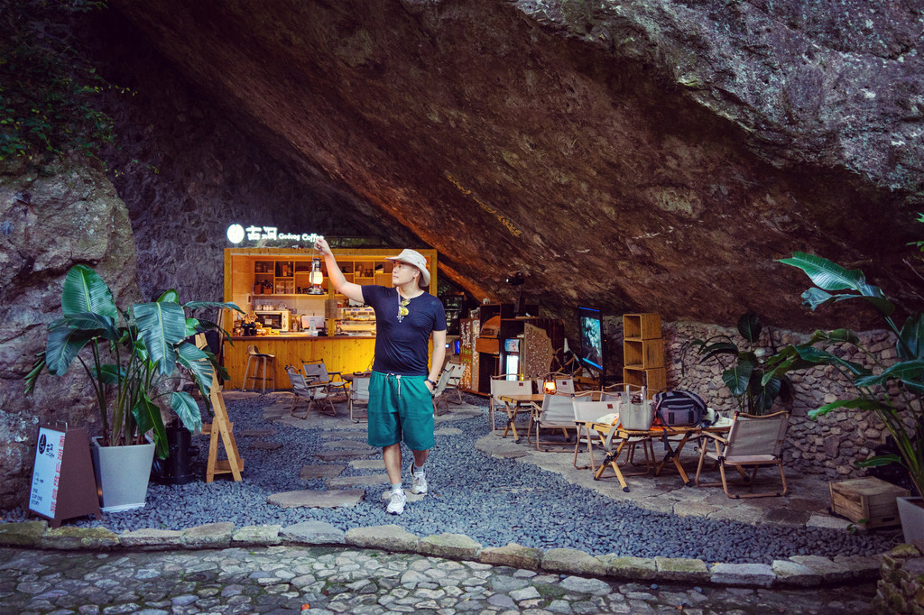 中间会路过一家超有格调的咖啡店,就在两处大岩石搭建的空隙里,名字相当贴切,——古洞咖啡!
