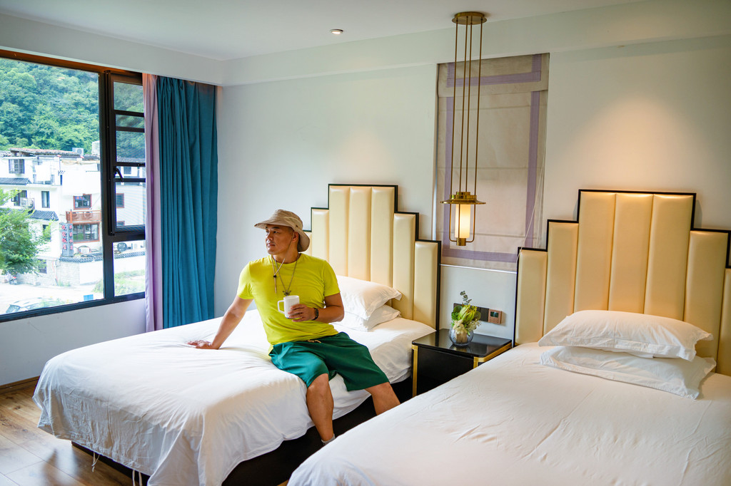 我入住的山景大床房,直面灵峰,180度全天候观赏山景,房间内清新雅致,轻奢简约的装修风格,带来精品酒店般的设施服务。