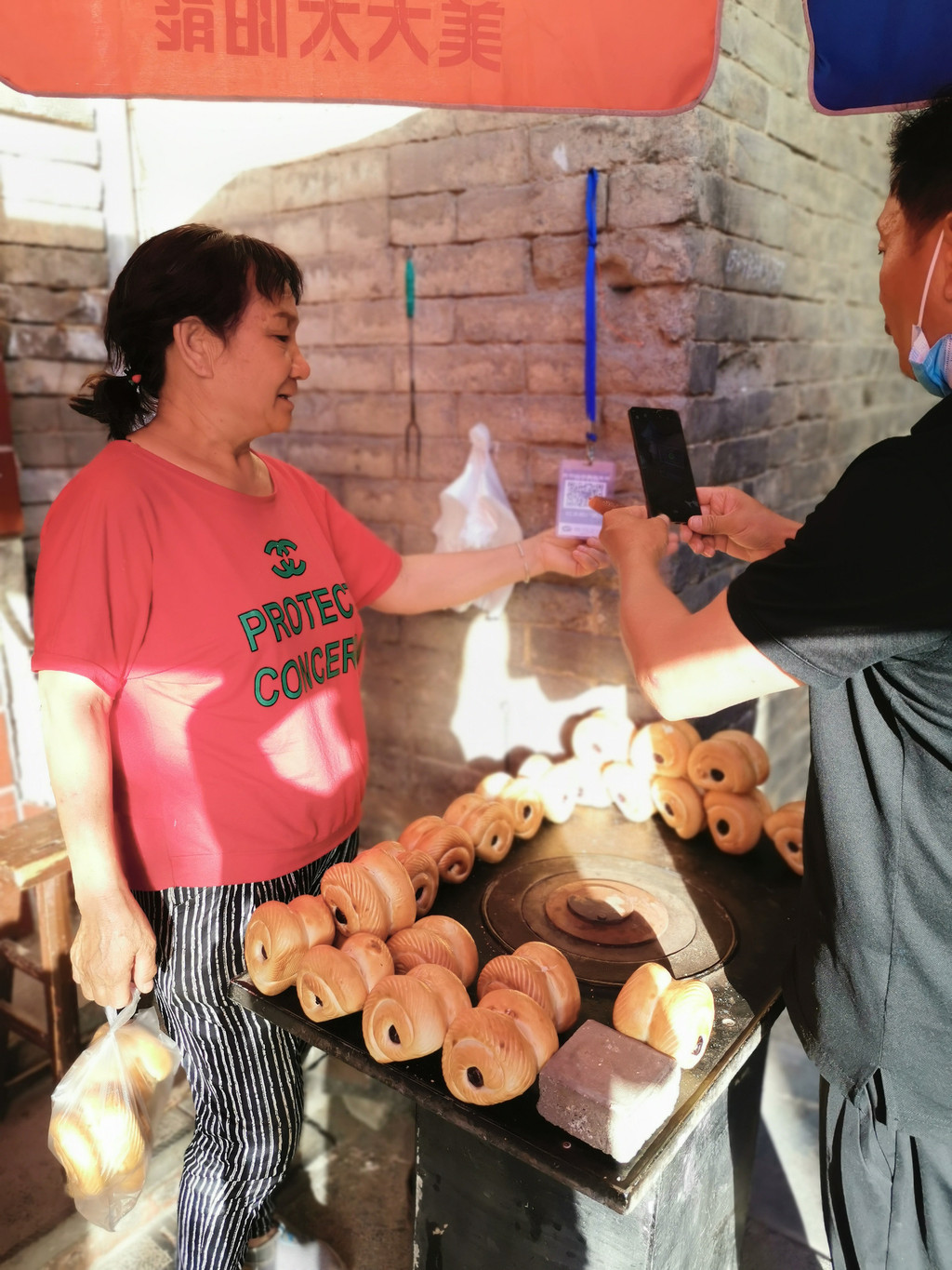 参观后,还在一个摊位上买了10元4个的烤馍,做纪念。