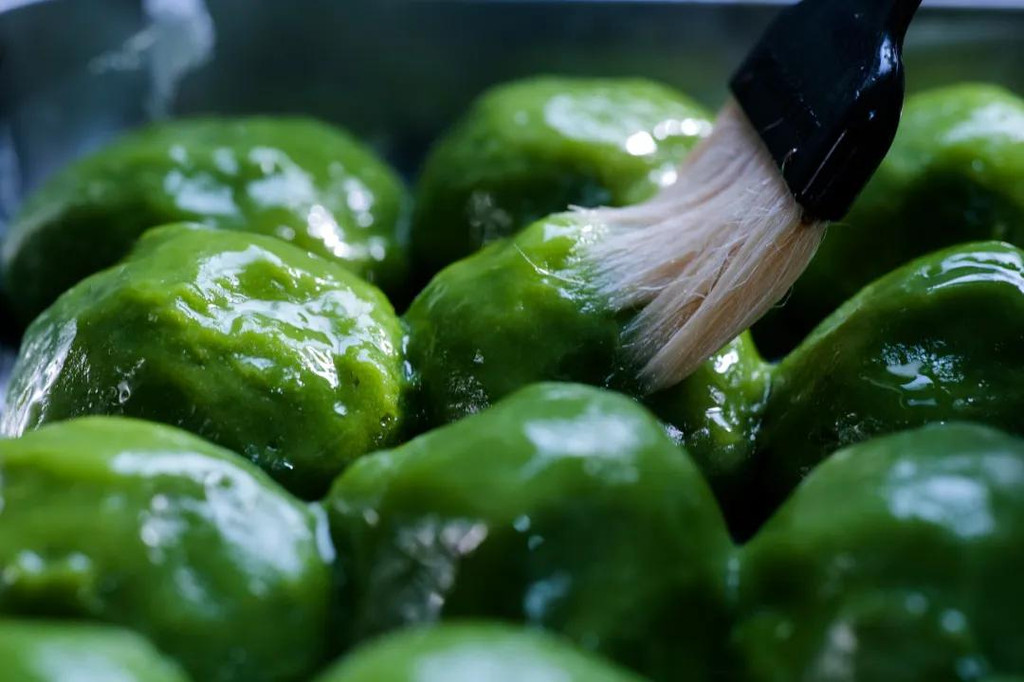 老祖母更是知道,青团出笼时要用毛刷将熟菜油均匀地刷在团子的表面,这样既可以防止吃的时候粘手,又能防止青团在保质期内不开裂。