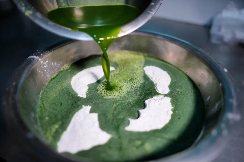 青汁沉淀干净后,接下来就是和粉的工序了。