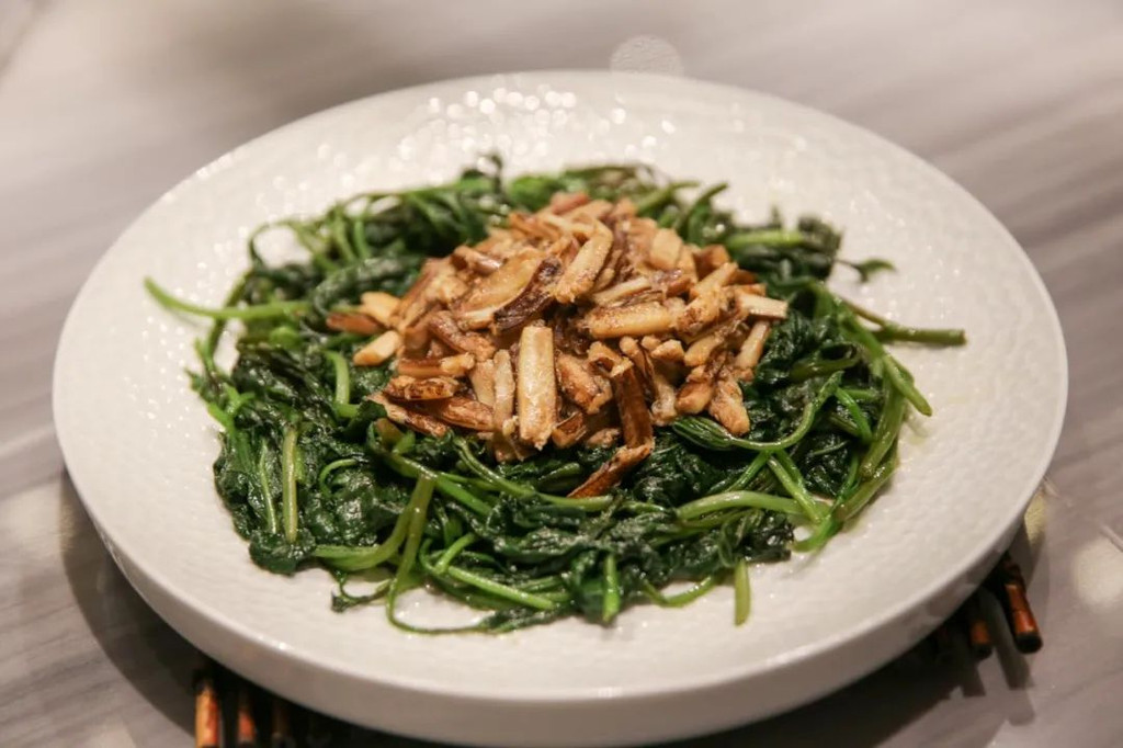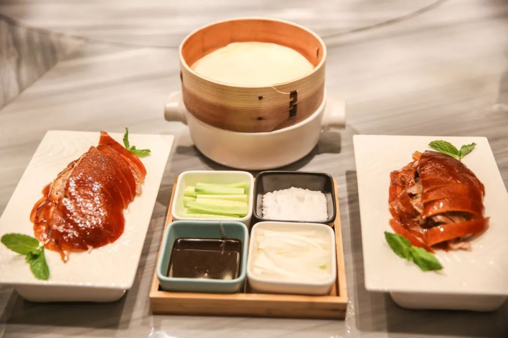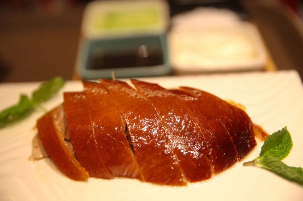 另一道特色菜品是果木烤全鸭。其实在推荐我这道菜品时,我是拒绝的。作为烤鸭爱好者,也算是尝遍了中国各地的知名烤鸭,一家苏州菜馆竟然说烤鸭是特色,真的是很匪夷所思了。不过在等待了45分钟后尝到它,觉得真是惊喜万分。鸭子的选用不会像北京烤鸭那么肥硕,鸭皮的脆度很惊艳,脂肪含量也刚刚好,多吃几片也不会腻,确实很精彩。