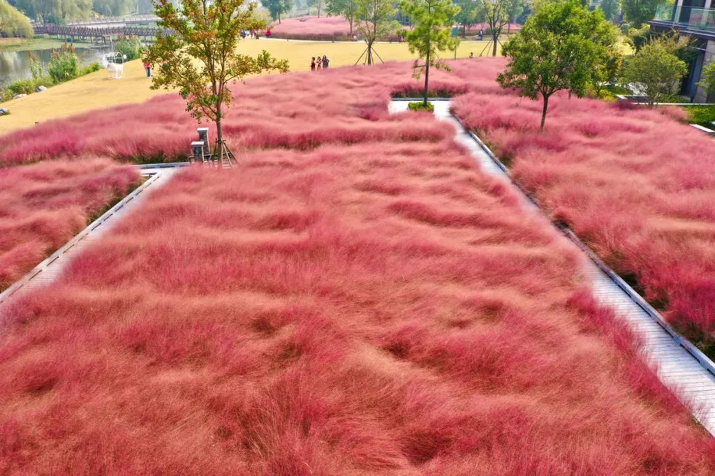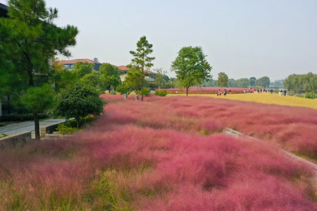 粉黛乱子草在近一年时间里把“粉色旋风”刮遍了全网,不少景点里都开始种植。但是在酒店里大面积、大范围种植粉黛乱子草,并把它融于酒店景观、客房景观中的,老北门柏漾酒店可能是其中的佼佼者。先来看看上帝视角的它们!