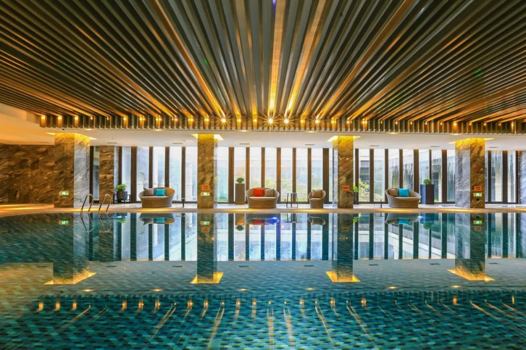 酒店也能满足商务会议及婚宴的需求。超大的无柱宴会厅和多个多功能厅,能够满足各种需求。更设有一间“钻石星空顶”宴会厅,根据钻石切割面来设计的屋顶上,垂下点点星光,毫不浪漫,简直太适合婚宴了。