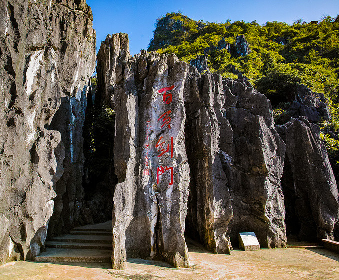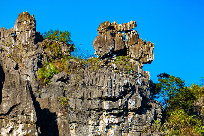 山上有一些奇石,马头峰、骆驼峰、莲蓬峰、蛤蚧石、观音拜月石、仙人过坳石、百页剑门等怪石。从百页剑门进入石林,石峰诡异,景色万千。
