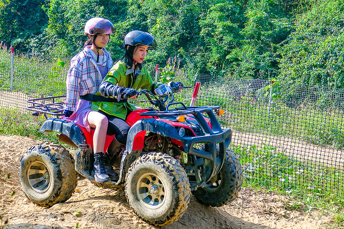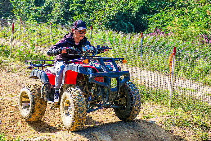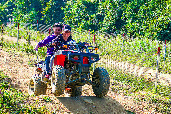 大家纷纷挑战了阳春隆海山庄引进的,骑仕四轮越野摩托,惊险刺激!