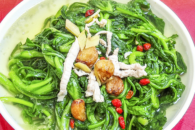 风姜鸡宴:阳春人习惯称为月婆鸡,以阳春市合水镇最为出名,在高流墟,大多数小饭店都以月婆鸡为招牌菜。月婆鸡由风姜、猪肚、鸡等煲制而成。可温胃散寒、消食止痛、行气活血。