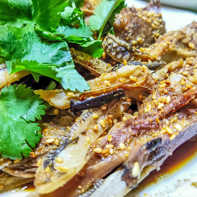 这次我们品尝了当地最有特色的以春砂仁为主的药膳:春砂仁焗鸡、春砂仁蒸排骨、春砂仁砵仔鱼、春砂仁猪杂汤、春砂仁豆腐、蜜汁三宝、蒜香鲜鱿、姜葱炒牛杂等。