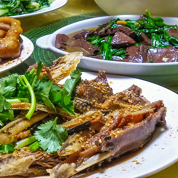 来到江城白沙街道的花果园饭店,我们品尝阳江白沙特色鹅风味餐:全鹅宴,其中有鹅头,鹅翅,鹅掌,白切鹅肉,鹅肠,鹅血,鹅乸饭,鹅汤,,鹅杂等菜品。