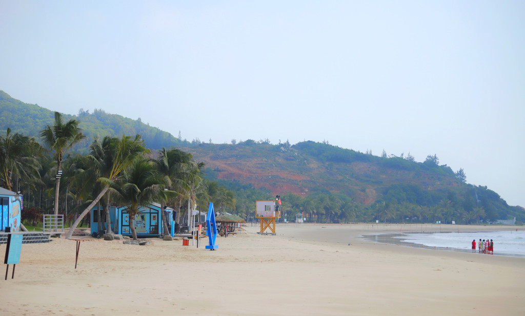 这里东西两侧有石山岬角拱卫,山上象形造型众多,密林环抱,海滩水质清澈,坡度平缓,沙质洁净。