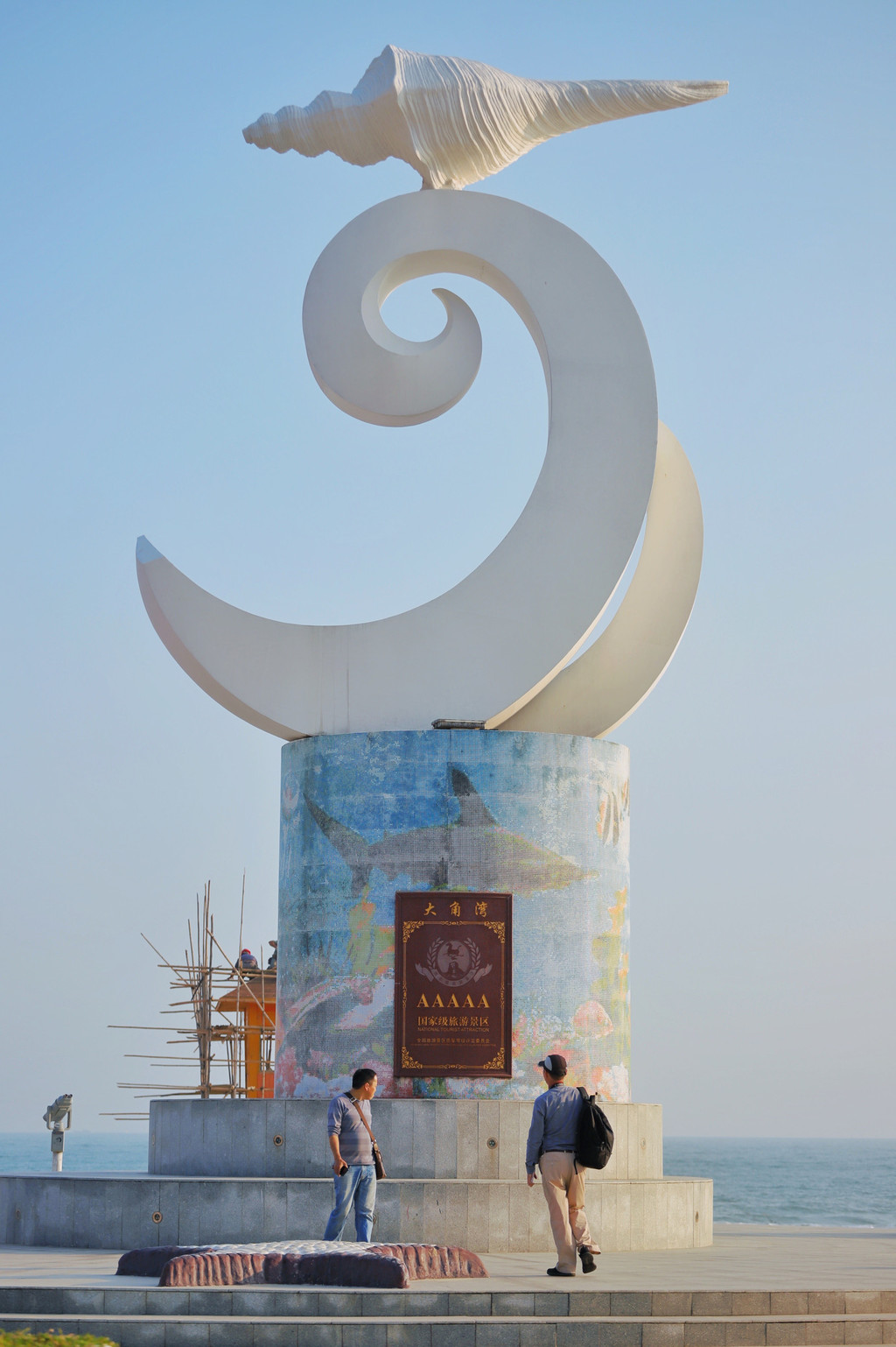 因为这里的海岸线滩长2.59公里,宽50-60米,螺线形湾似巨大的牛角,故名“大角湾”。