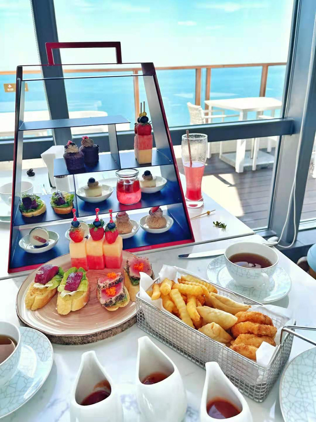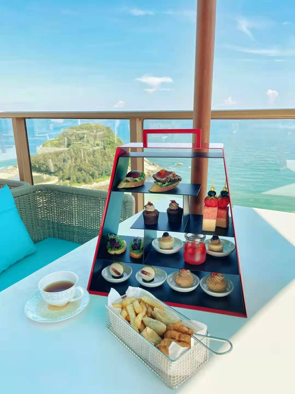 我们是先去了洛悦的餐厅去品尝我们的下午,下午茶时间是下午2点到4点哦,需要预定在四点前预定才可以吃哦,在这里拍照真的绝绝子,真的是巴厘岛的风光的户外餐厅, 对着海吃着下午茶真的不要太快乐了。