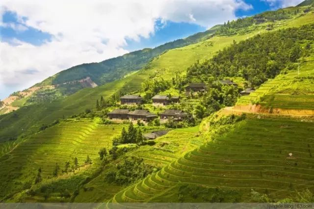 龙胜龙脊梯田景区龙脊梯田包括平安北壮梯田和金坑红瑶梯田两个景区。两处梯田既有大刀阔斧的砍削,又有丝丝入扣的精雕细啄;既显得气势磅礴,又含着清秀的艺术情调。由于山行各异,呈现两种互不雷同的诗域画境。