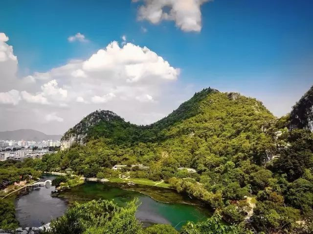 七星景区七星公园是桂林市面积最大、历史最悠久、景致最多最集中的综合性景区。1998年,美国总统克林顿访华时,曾在骆驼峰脚下发表环保演说。