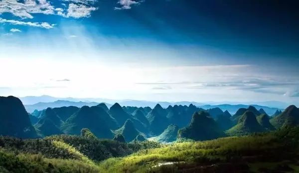 桂林尧山景区由于尧山景区地势高,站在山顶举目四望,山前水田如镜,村舍如在画中,千峰环野绿,一水抱城流的桂林美景尽收眼底。