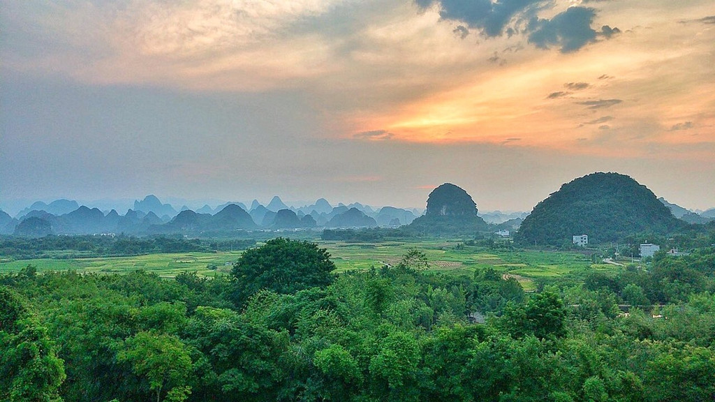 夏天该有的治愈,乡村的翠绿,落霞的艳红~