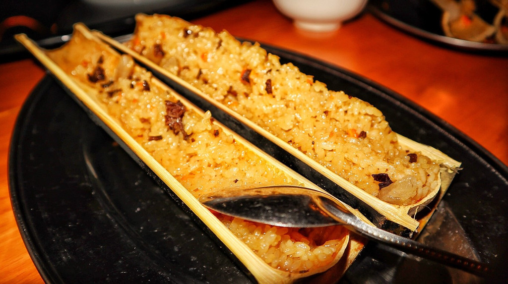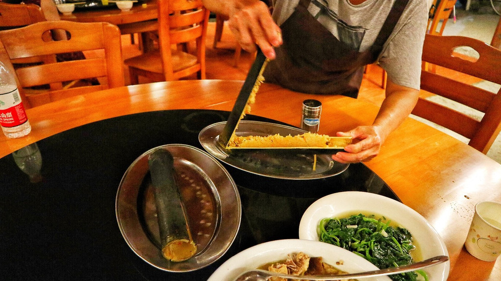 民宿老板为我们做的饭菜~竹筒饭~竹筒鸡~