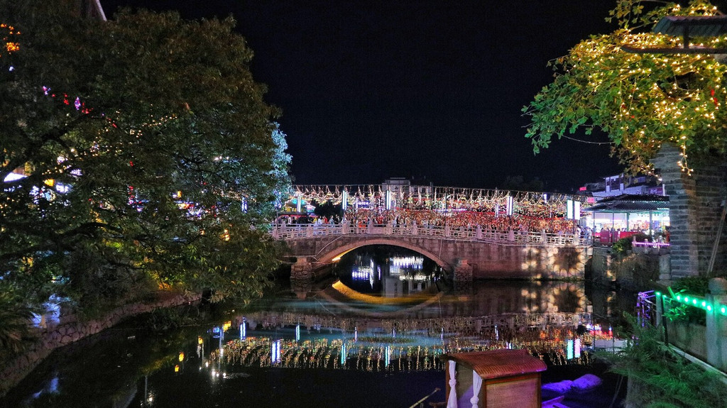 遇龙桥两侧栏杆藤蔓累垂,嫩绿的藤萝,悠闲的荡在桥洞里,像碧石所串缀的门帘,使这座古石桥更显得清幽古朴。