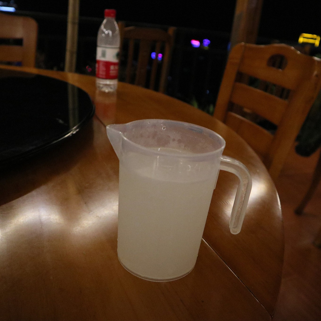 饭后老板还送我们一杯自己酿的瑶家糯米酒,酸甜很好入口,于是在老板家买了一大桶回去~