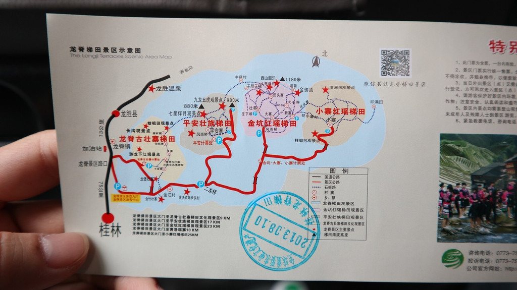 门票后面有印着几个梯田的分布图~晕车的朋友可以去最近的龙脊古壮寨梯田~