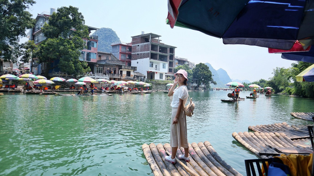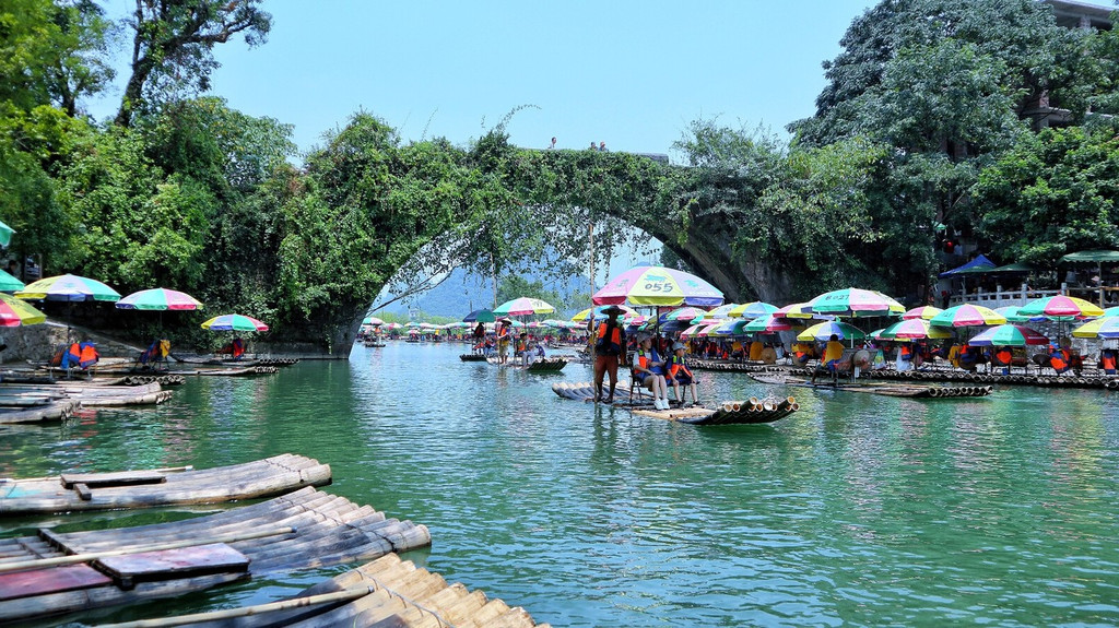 遇龙河的人工竹筏,因为时间不够,不能上去享受一下