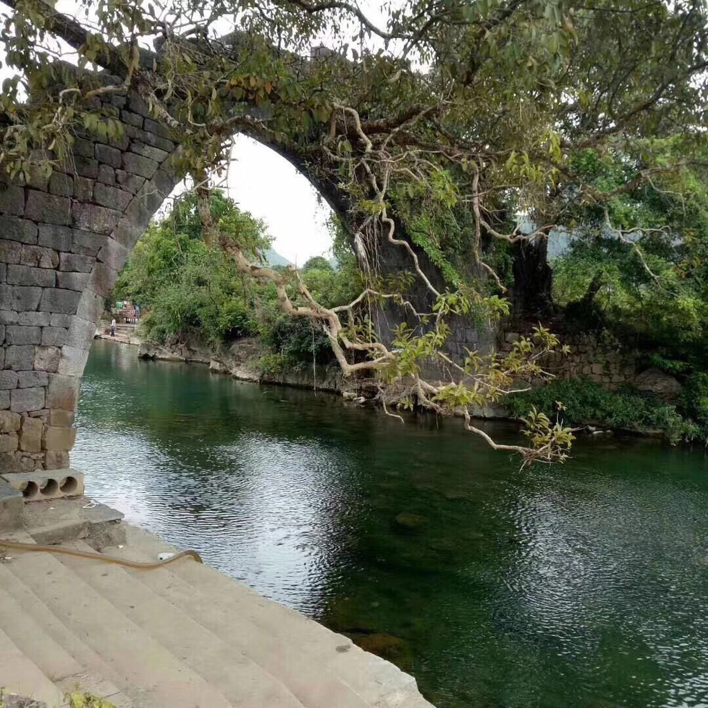 这次来到工农桥,没有那繁华的竹筏,但这种安静,却是给工农桥带来了不一样的风景与味道。在工农桥上,一边是大榕树,遇龙河穿过这里清秀的山,在大榕树旁边流淌,安静而动人。