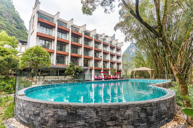 遇龙河一直都是 阳朔 的核心景区,在这里,两岸青山清秀,一直都有十里画廊的称号。而酒店傍水而建,在这里
