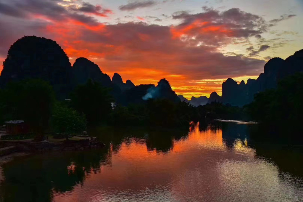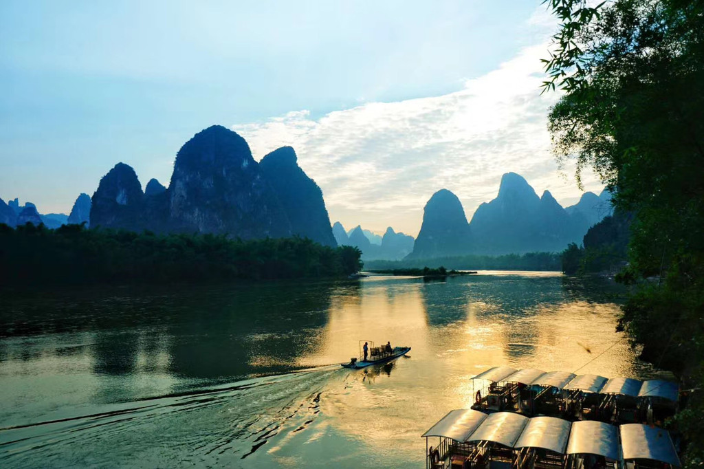 漓江沿岸总是不缺少美景,尤其是看到了 漂亮的朝霞