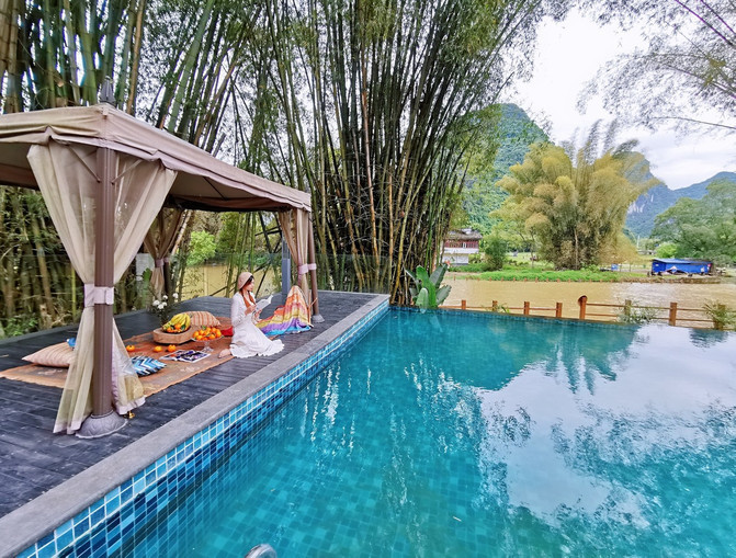 在客栈的泳池旁,点了一份精致的下午茶,虽说天气稍微寒冷不能下到泳池中,但就这么慵懒地躺在泳池旁边的帐篷,来上一件美味的蛋糕,来上一杯香浓的咖啡,在半睡半醒中,这样的下午闲适而美好。