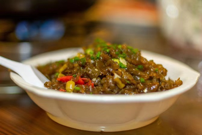 大个的田螺螺肉爽口,酿入剁碎的猪肉,猪肉 和田 螺肉的口感融合在一起,就是 阳朔 的名菜田螺酿。