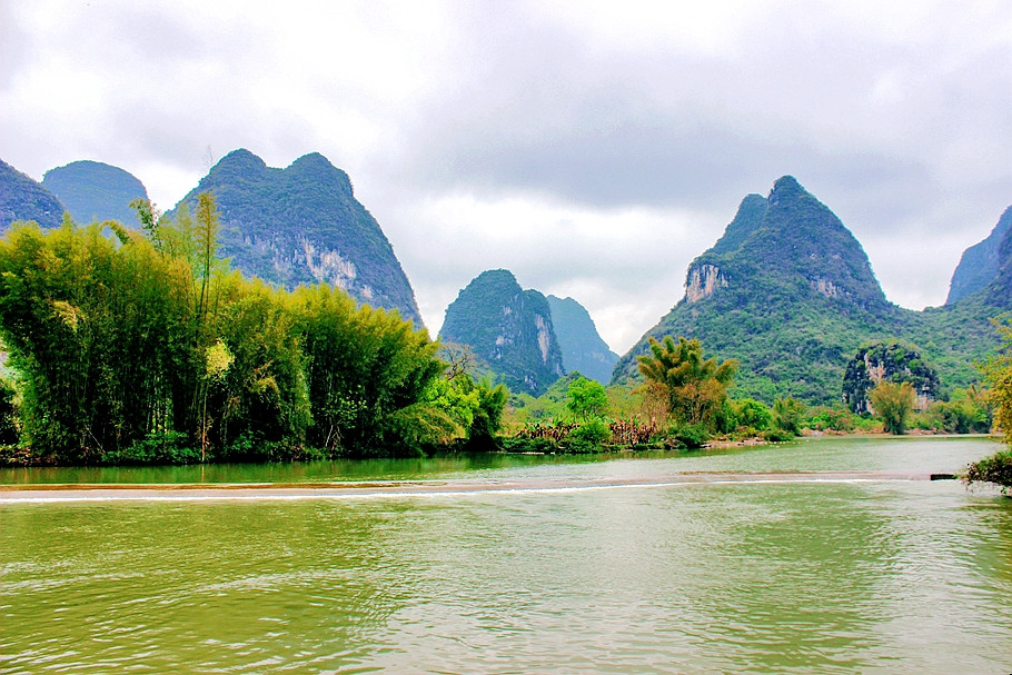 遇龙河,是漓江在阳朔境内最长的一条支流,两岸山峰清秀迤逦,连绵起伏,河水清澈如镜,随手就能拍出山水画般的照片。与漓江风光相比,遇龙河的风景更温婉,有“小漓江”之称。遇龙河是一条美丽的河流,它以山青水碧竹翠桥奇村巧而闻名于世,是桂林山水中不可多得的美景。