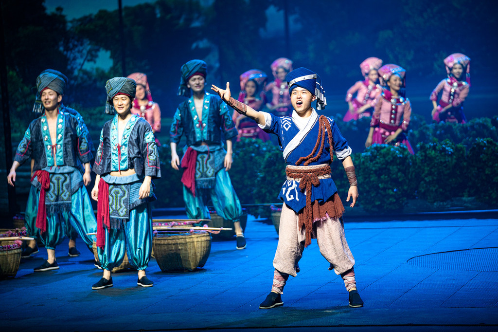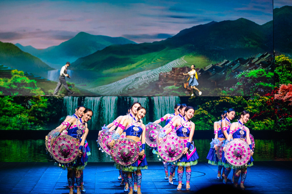 八桂田园,多民族在这里聚居,壮族、瑶族、侗族、苗族、彝族等,他们通过优美的舞蹈联谊,并用歌谣传唱和谐美好的生活。
