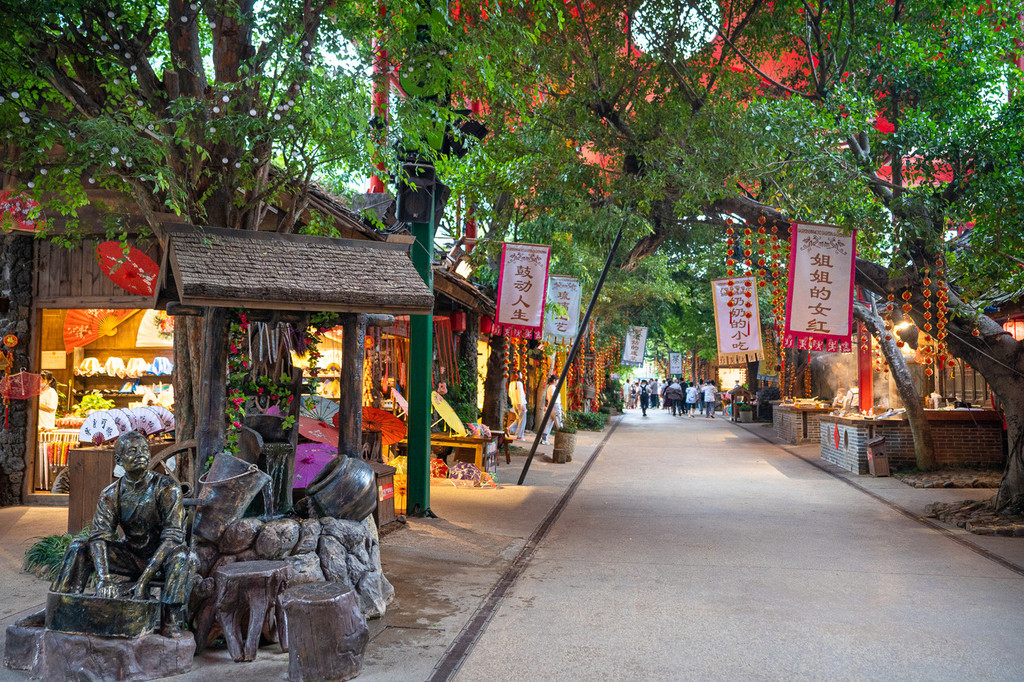 🍯景区内设有 阳朔 古村,风情街等特色街道,店铺的名字也都很有意思,如爷爷的酒缸、外婆的故事、姑姑的咸菜、妈妈的茶坊…….,勾起满满的回忆,可以说用手工作坊留住了乡愁。