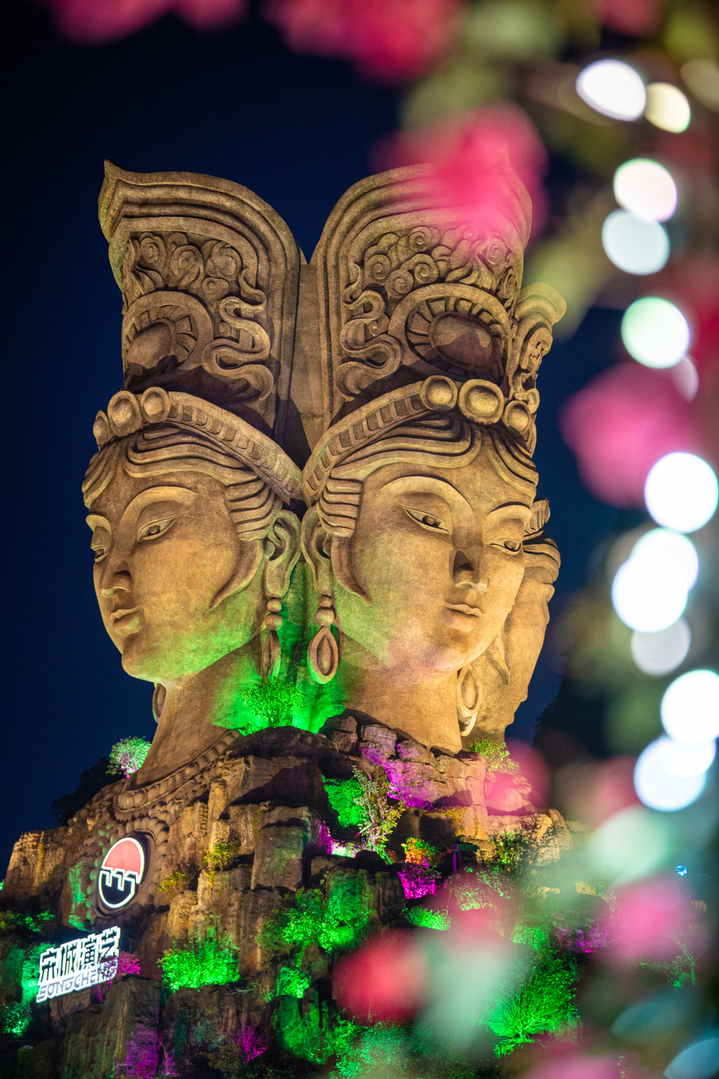 🤟🏻与其他千古情景区相比,这里的独特在于:标志性的女神雕塑四周,围拢着极具特色的南方喀斯特山峰,平地拔起,婉约秀丽。