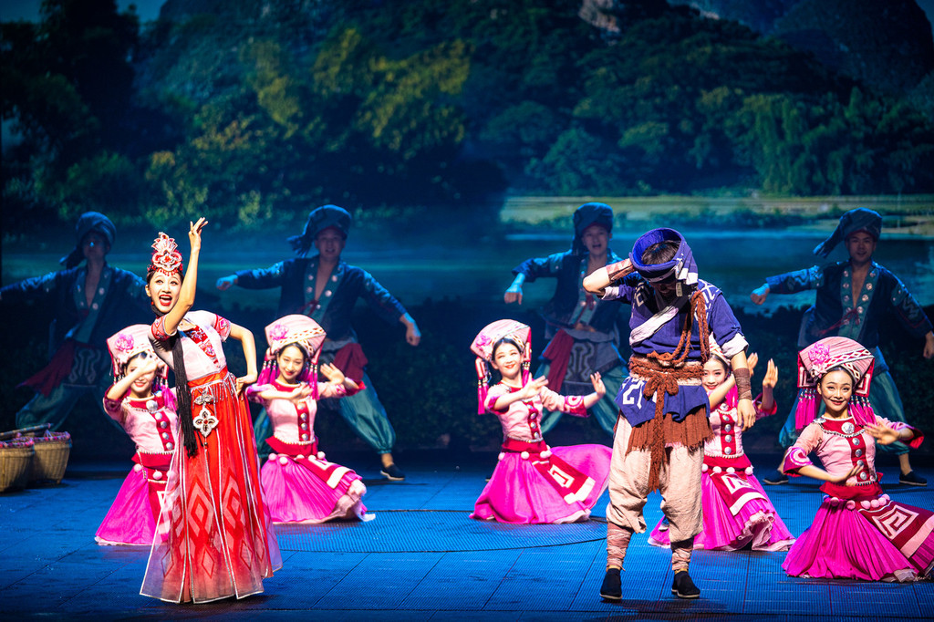 接下来便是最精彩的千古情演出了,🎭整个演出分为5个部分,荡气回肠地演绎岀了 桂林 绝美的山水和浓郁的民族文化。