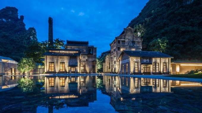 客房本身还融合了广西特有的喀斯特地貌的特征,设计师称为“溶洞空间”