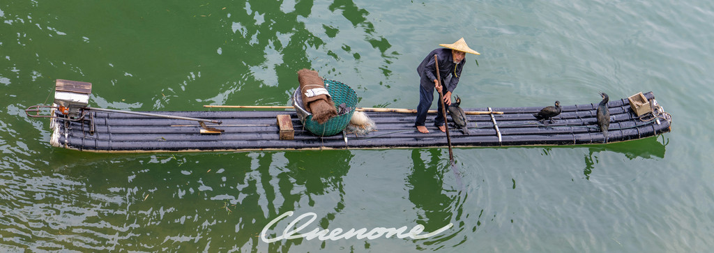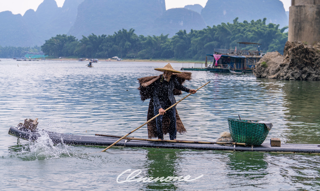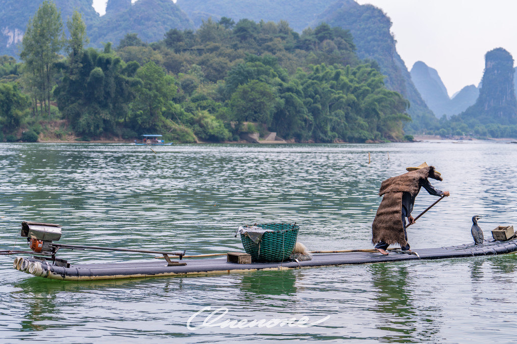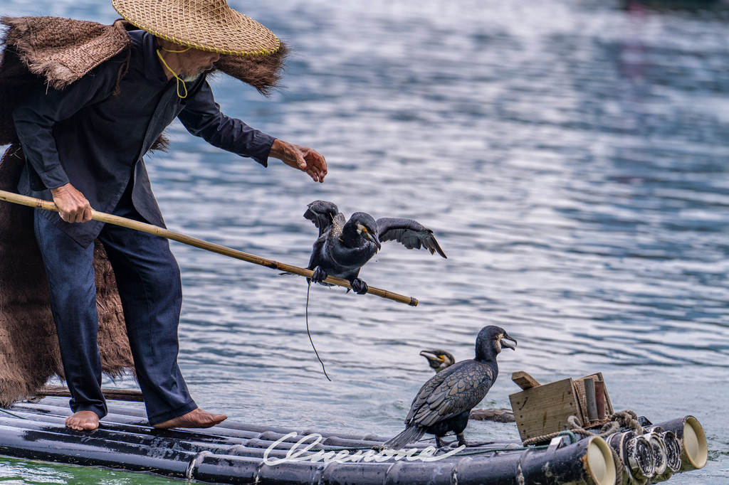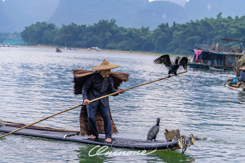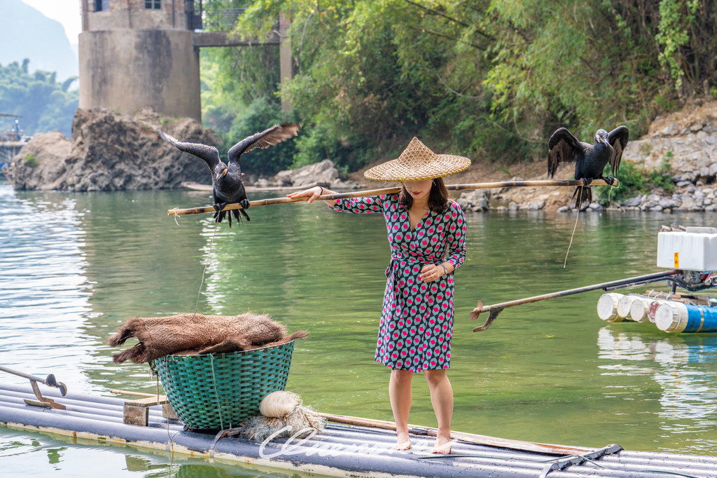 鱼鹰表演:漓江的渔民不用鱼竿和渔网,而是用“好伙计”鸬鹚来捕鱼。上个世纪,老渔民们喜欢相约趁着夜色撑着竹筏聚在漓江之上,使用煤油灯指引鸬鹚找到水面下游弋的鱼群。每个渔民家中的鸬鹚都受过特殊训练。渔民会在鸬鹚的喉咙处系上一个小结,使它们不能吞下捕到的大鱼,只能吞食小鱼。因为从小养到大,鸬鹚更像是渔民的宠物。