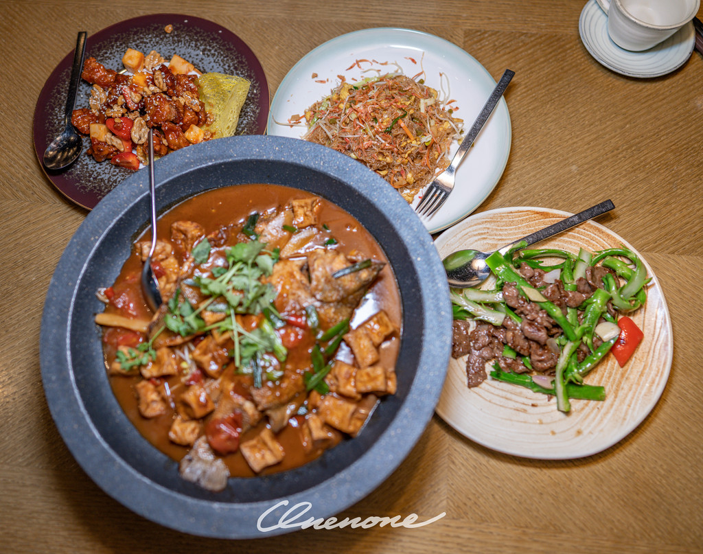 陶锅啤酒鱼、琥珀核桃咕噜黑豚肉、广式芥兰炒福利牛排肉、樱花虾炒银针。