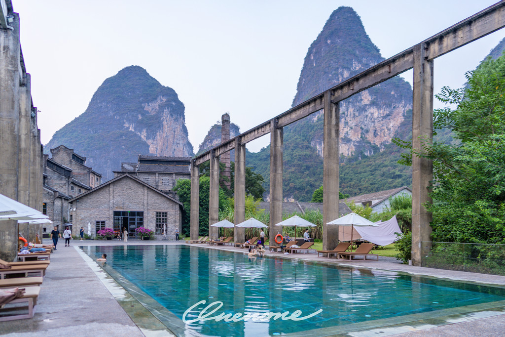 装修风格:酒店布局为前厅大堂、全山景客房主体建筑(5层楼高度)、田园厨房、水疗中心、展厅画廊(1层)&放映厅(1层)&喀斯特花园餐厅(2层)、水谷广场、精品阁(1层)&阅览室(2层)、多功能厅(1层)&历史套房(2、3层)、糖舍别墅、泳池别墅、1969吧(酒吧)、健身房&童聚(室内儿童乐园)、江畔泳池、私人码头、水泵房(8人位定制餐厅包厢)。酒店由漓江岸边一座上世纪60年代起建造的废弃糖厂改建而成,外墙保留了老旧工厂的建筑外观,但室内空间经过重新设计。无论公共区域、休闲娱乐设施还是客房内部装饰,都极具虚实结合的艺术风格。自然与现代、古朴与奢华相结合,带给每位入住宾客和其它到访者浓烈的艺术感受。独具匠心的改造设计,让旧糖厂的老建筑重获新生,成为阳朔奢华度假酒店的标志性作品之一。