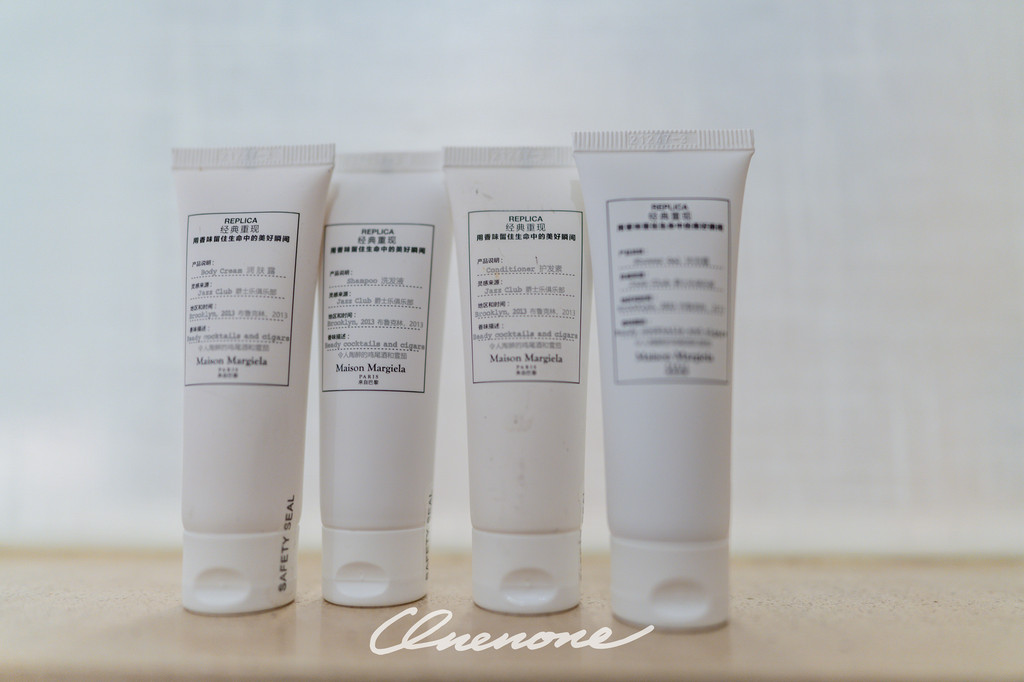 洗护备品:来自法国巴黎的品牌梅森马吉拉Maison Margiela,产品线涵盖高定时装、鞋履、珠宝、眼镜、香水等,品牌以解构主义手法、反主流文化态度、超前的设计理念、特立独行甚至怪诞的风格、永远出其不意的表达和展示方式,从1980年代末起持续启发和影响着全球设计的潮流风尚。酒店这套旅行洗护套装包括:洗发液、护发素、沐浴露、润肤露和香皂。