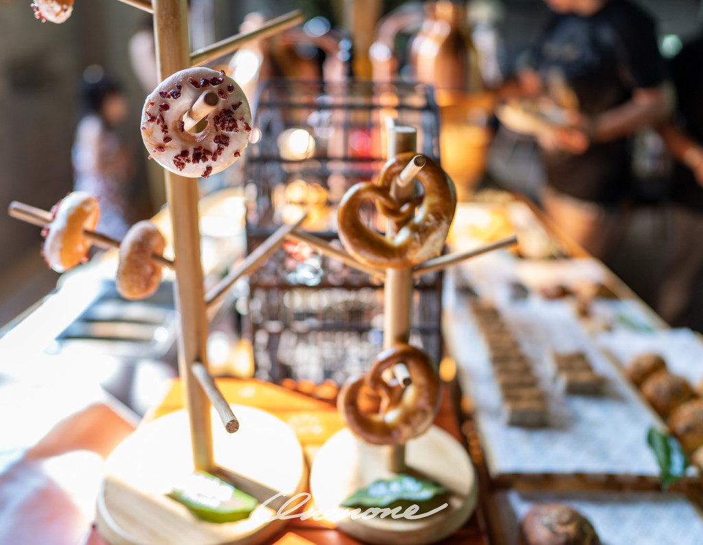 免费下午茶由工作人员摇着拨浪鼓送到客房阳台外,包括:瓶装的百香果汁、罗汉果茶、普洱茶,自封袋装的米花糖、香芋条,楼上的客人可以放吊篮下来接,顺便回味童年的乐趣。当然餐厅同时提供单点的下午茶或套餐。