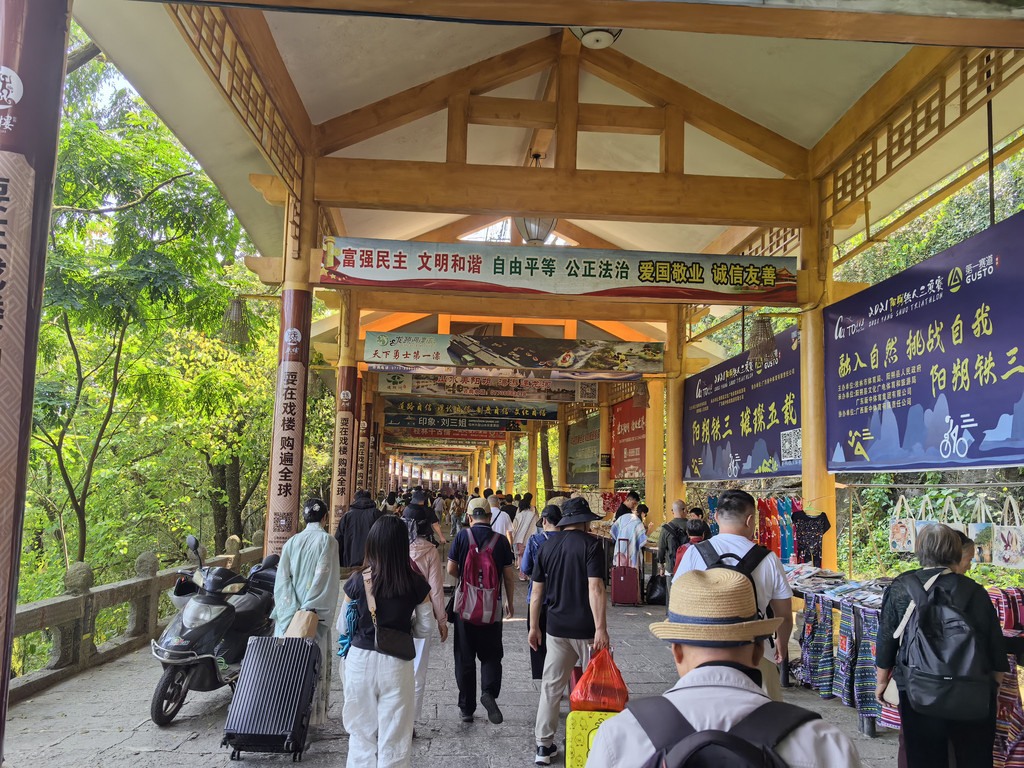 到达龙头山码头后,出码头的那段路真的是巨长石板路,拉行李好累,做好心理准备。