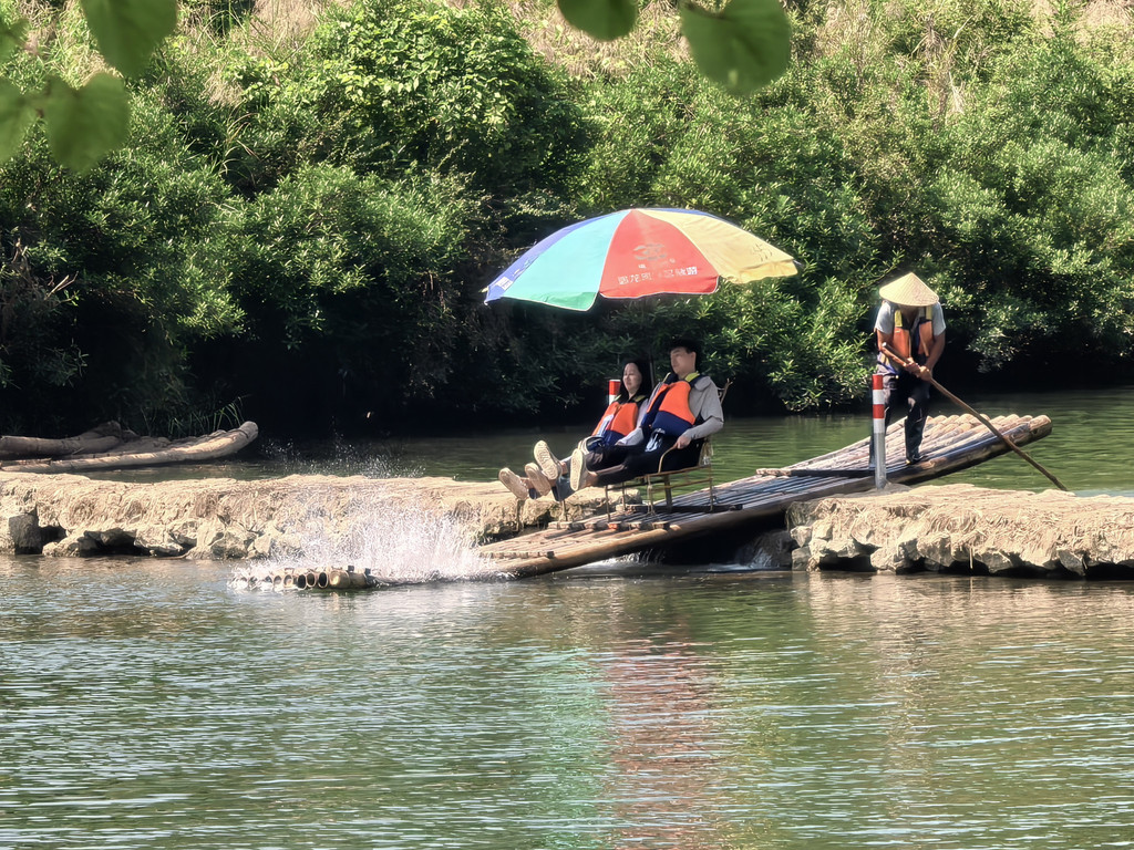 竹排冲坝,来之前对这个特别期待,研究了各条线路差异,觉得一定得尝试下。但到了发现水位太低了,坝完全露出水面,冲坝变成了跷跷板,顿时就没了兴趣。