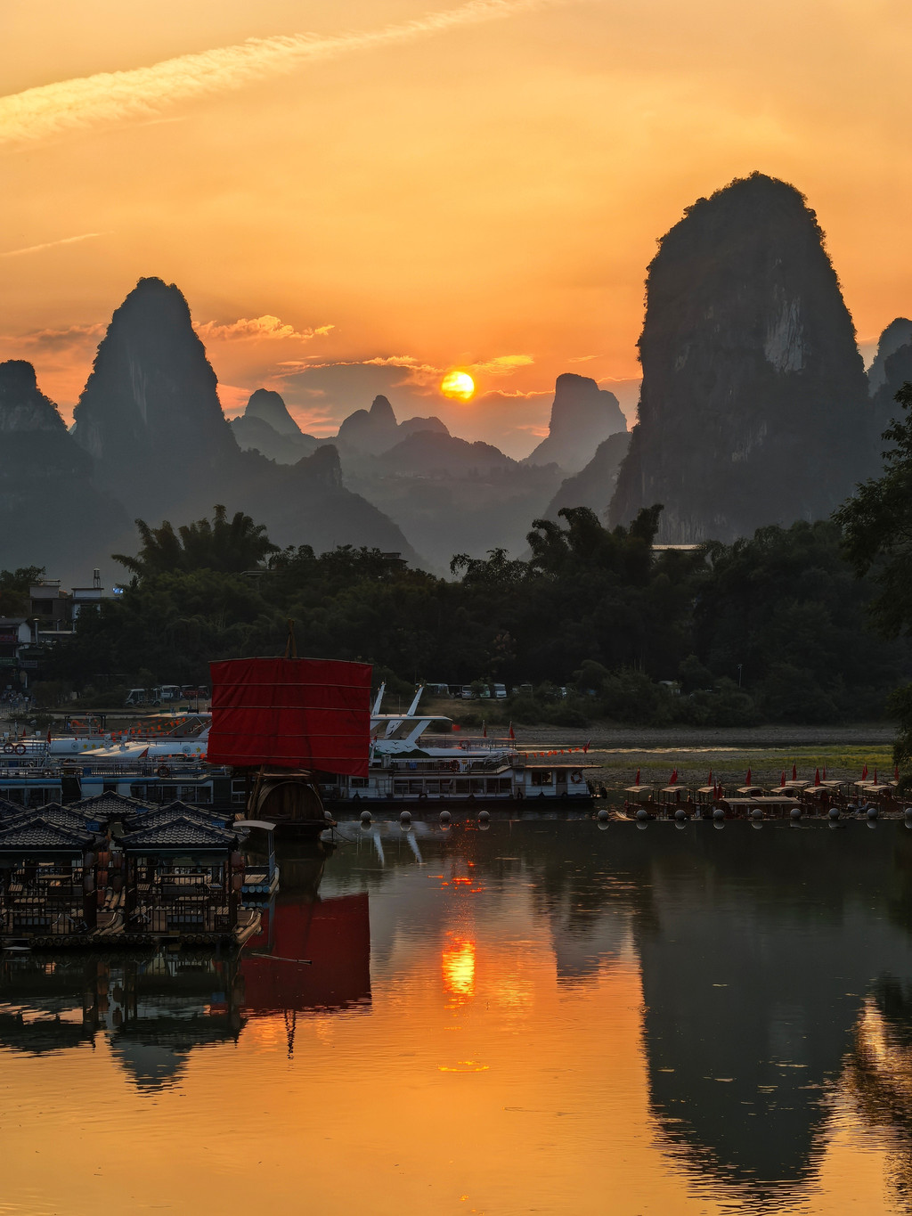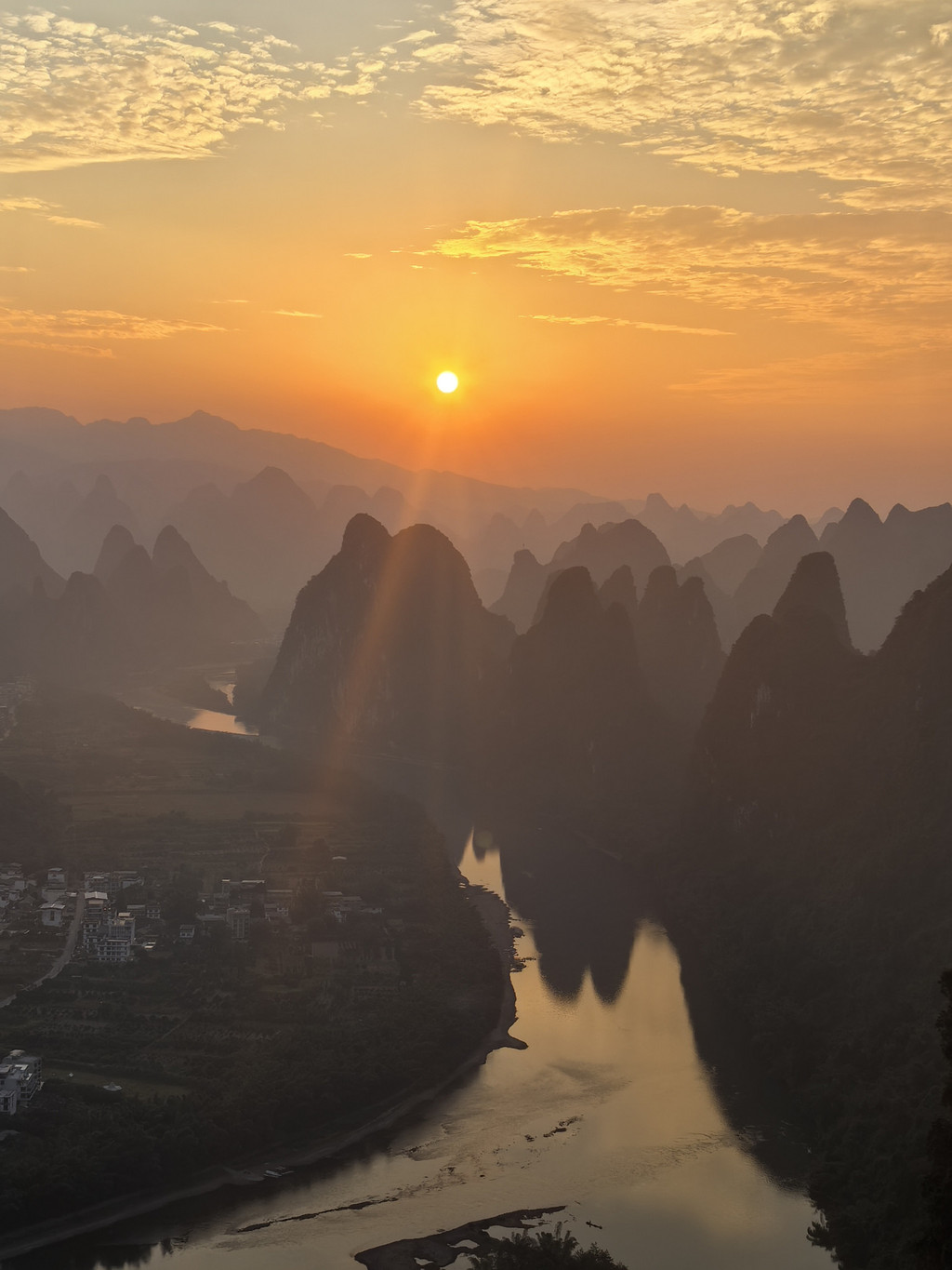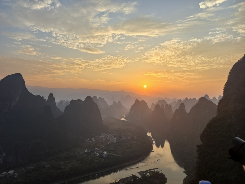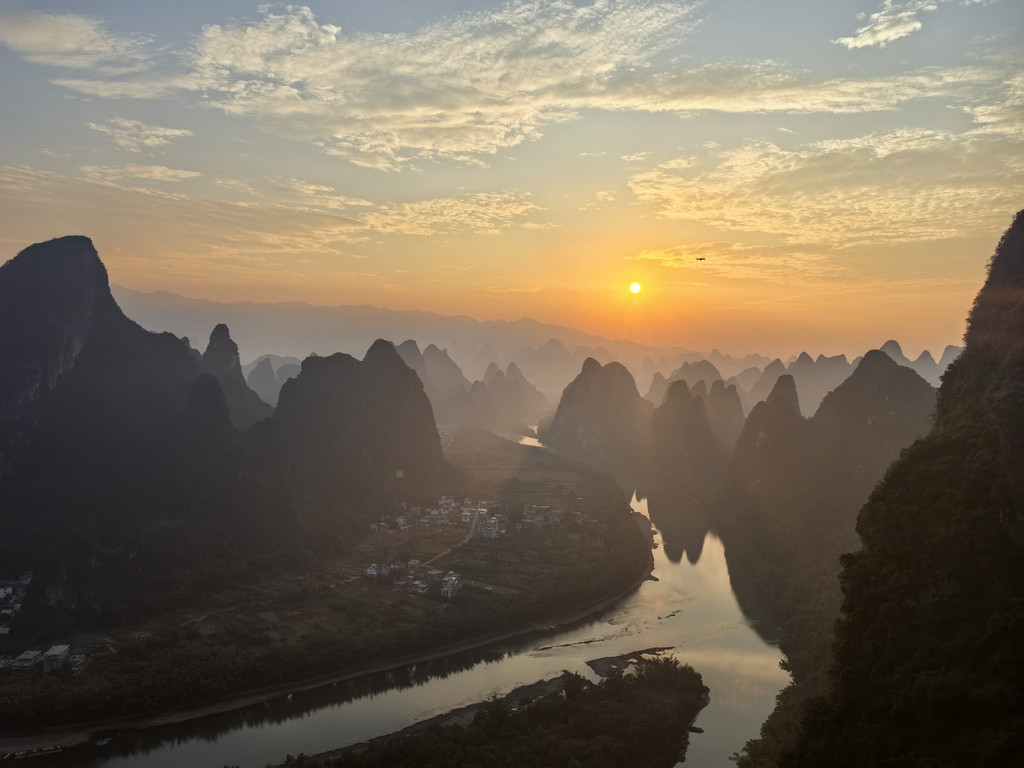 终于看到漓江山水全貌了,不过太阳会越来越耀眼,很快就会不适合直视和拍照。