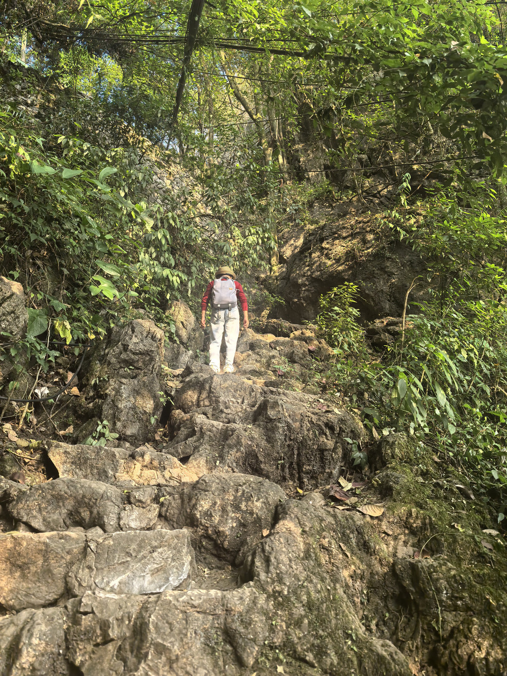 上山的路前小半段还相对比较好走,越到后面石阶会变得不规则,有的比较陡、有的路窄,需要手脚并用。