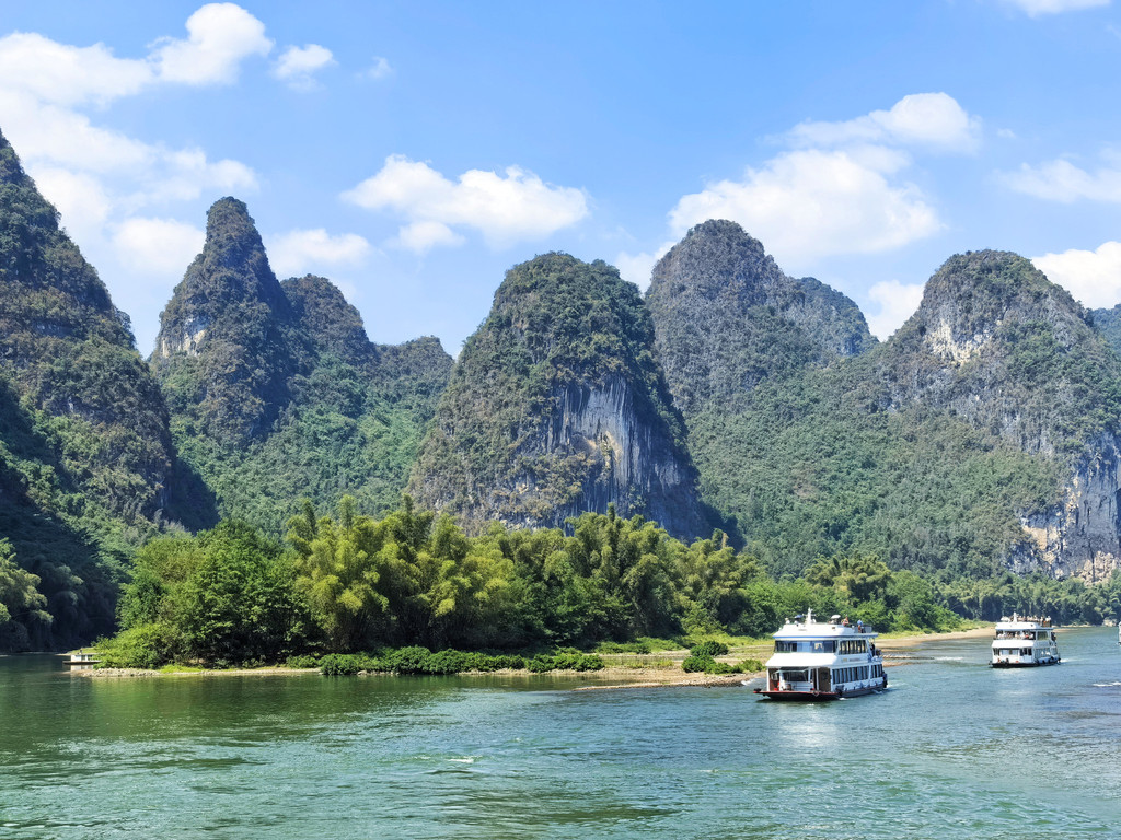 漓江游轮是我个人觉得阳朔必坐的游览方式。游轮分三星、四星、五星游轮,舒适度稍有不同,启航码头不同。一般选三星的就行,座位固定,但不能提前选,取票时会自动生成座位号。